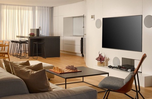 The Luxury Villa Ellipse first floor consists of a living room and a fully equipped kitchen that elegantly continues to the dining room. The living room opens onto a terrace in the shade, hidden from the view of passers-by, where you can have a coffee or breakfast in peace. In addition to the outdoor dining area, you can also use the wood grill for outdoor dinners on summer evenings.