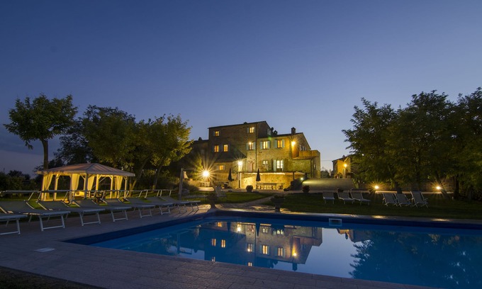 The ancient residence of 1700 is located on a luxuriant hill where you can grasp in all its depth the wonderful view of the Valdichiana and the beautiful Cortona. From the windows and the delightful swimming pool, when the darkness lights up with the lights of the city, a feeling of abandonment is perceived in a magical context. This majestic manor house is reborn respecting the most ancient Tuscan tradition, giving away the atomosphere of other times. Book your exclusive stay on this villa you can treat yourself to experiences related to art, culture, sport, but also to relaxation and well-being. In exposed stone, characterized by the finishes of a typical Tuscan farmhouse, the building stands on three levels divided into comfortable and equipped apartments and hosts on the ground floor a large living room with fireplace, billiards, a comfortable TV area and the living area. with kitchen.