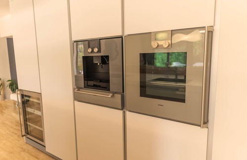 On the ground floor there is a kitchen-dining room 50 m2, fully equipped Gaggenau appliances including a wine rack, coffee machine, microwave oven, oven, dishwasher, induction cooker, etc. Kitchen Bulhaup, tv 50 inches.