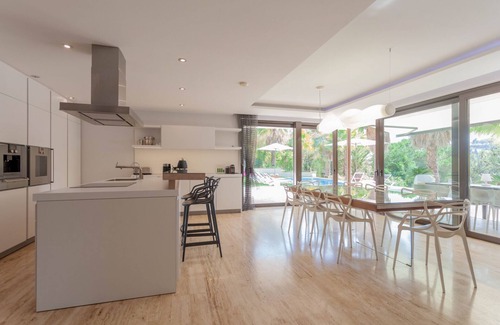 Plot 2500 m2 with perfect garden has a high level of privacy .. The Villa has 6 bedrooms and 6 bathrooms, one master-bedroom of 50 sq. m. with Jacuzzi, two suites and two single bedrooms with shared bathrooms (all bedrooms with air conditioning) and one apartment with a separate entrance, bathroom and kitchen.