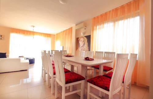 Providing a seasonal outdoor swimming pool, Luxury Villa Italiana with LargePanoramicSeaview and Private Pool offers accommodations in Balchik. This property offers access to a balcony, free private parking, and free Wifi. On clear days, guests can head outside to enjoy the villa's outdoor fireplace or simply kick back and relax. Offering a terrace and sea views, the spacious villa includes 6 bedrooms, 2 living rooms, satellite flat-screen TV, an equipped kitchen, and 6 bathrooms with a shower. Towels and bed linen are offered in the villa. There's also a seating area and a fireplace. Albena Central Beach is 1.5 miles from the villa, while The Palace of Queen Maria is 2.7 miles from the property. Varna Airport is 23 miles away.