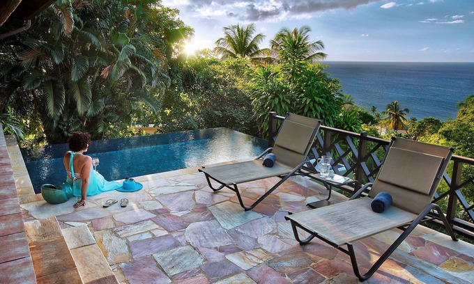 Enjoy our serene 4-bedroom Caribbean villa amidst lush gardens. Begin with pool dips, beach adventures, and scuba diving. Relax in our hillside villa by Arne Hassleqvist. Delight in the 18th-century French plantation-style living area with global accents.