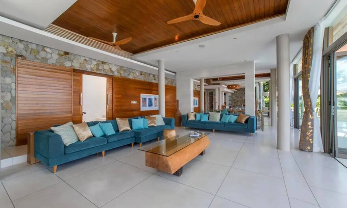 Luxury Villa Skyfall is a modern island house with stunning ocean views and a very spacious garden. The villa also has its own access to the water and the beach. Floor-to-ceiling glass walls and doors, bright living spaces and bedrooms, an incredible infinity pool, a private gym, and a sauna are all about! This super villa, designed by GFab by Gary Fella, is one of the most prestigious and secluded in Thailand.