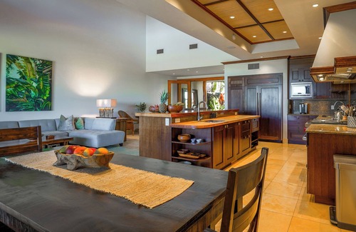This Kohala Coast vacation villa on the Big Island of Hawaii allows easy access to the white sands of the stunning Mauna Lani Beach and the exclusive Mauna Lani Beach Club. Located on the southern side of Mauna Lani (just 20 miles north of Kona International Airport), enjoy the convenience of resort amenities, including fine dining, world-class shopping, championship golf, and tennis facilities.
