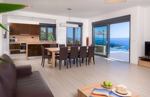 Modern holiday house Villa View Makarska with the heated infinity pool at the foot of the mountain Biokovo and its park of nature,on Makarska is situated in a wonderful, quiet and natural environment with pine trees and olive fields. On the ground floor is located the beautiful heated infinity pool with massage (33 m²),from which you have a breathtaking panoramic view of the town of Makarska,the sea and the island.You will want to stay forever in this modernly equipped villa.