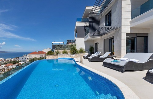 Book Luxury Villa Vision with a heated infinity-edge pool located in the town of Makarska, below the slopes of the mighty Biokovo mountain, in central Dalmatia.