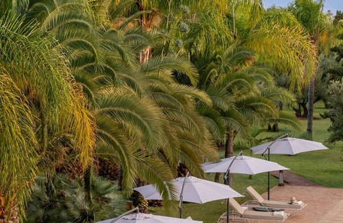 Immerse yourself in the beauty of our gardens with majestic palm trees, accompanied by our 180 m2 pool, providing an idyllic setting for moments of relaxation and pleasure with family or friends.