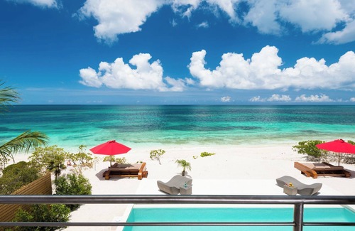 Villa Sade combines inventive design with expansive views to create a delightful sensory experience. This modern estate is a marvel of indoor-outdoor design, perched on the shores of Grace Bay, allowing direct access to one of the island's best reefs and framing breathtaking, unimpeded seascapes. You get exclusive use of an infinity pool situated on a patio that melds perfectly with the beach behind it. After a kayak ride in the morning, dive in to rinse off the salt or spend peaceful afternoons lounging on the sunbathing shelf. You won't spend much time indoors when you have an outdoor shower and barbecue.