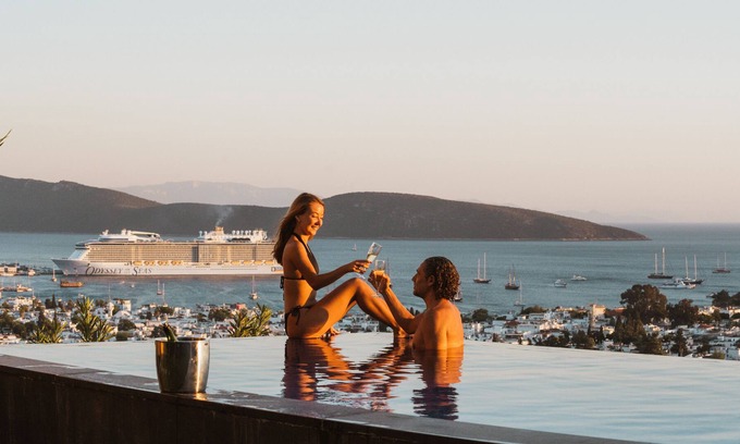 Located in the center of Bodrum, the villa is 300 m2 in a large, spacious, and calm neighborhood with a magnificent view of the sea, castle, and the Bodrum city skyline. You will have your own villa with 2 bedrooms both of each have 2 double beds, 1 bedroom with 2 single beds, a large living room, and a fully equipped kitchen. Everything you need is available in the villa. You will experience an infinity pool as a jacuzzi with an amazing Bodrum view. You will also have access to the game room.