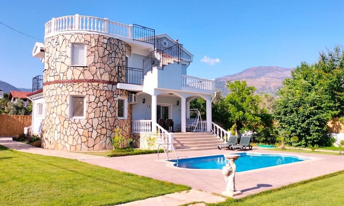 Luxury Villa with Private Pool in Köyceğiz:Bülbül has 3 Bedrooms , 4 Bathrooms, and max occupancy of 7 people. The minimum rental for this property is 1 nights, but this can change depending on the season you plan on staying. Previous guests have given good rated it, and VRBO labeled it a top-rated Villa because of the excellent services rendered by the owner or manager of this Villa, and has consistently provided great experiences for their guests. Most families or guests that use it recommend it to their friends and some of them are repeat guests. Villa has a friendly neighborhood, and the Koycegiz has interesting places to visit. If you want to learn more about the Villa in Koycegiz, such as places to visit and things to do nearby, you can check below to learn more.