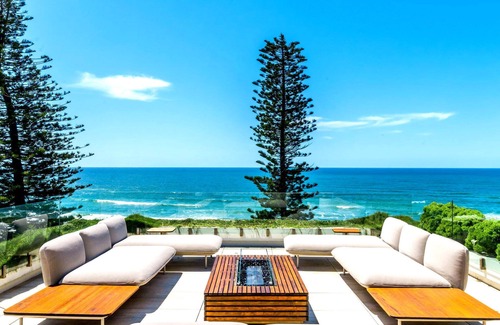 Unforgettable evenings on the rooftop entertaining area, complete with a fully equipped kitchen, dining space, and fire pit, perfect for enjoying views over the ocean. The landscaped garden and expansive balconies provide additional outdoor spaces to relax and take in the views.