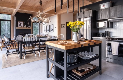 Chalet Balétor on Lac Sarrazin is nothing short of awesome. This brand new cottage, built in 2020, combines both rustic and modern charm and was designed to provide you with a true luxury cottage experience.