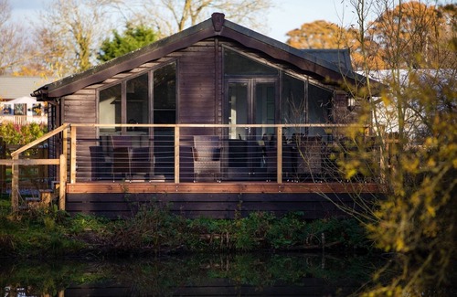 Luxury Wooden Lakeside Lodge DUNLIN with HOT TUB Near Longleat | Ski Chalet in Westbury
