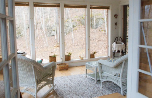 Immediately step into a panoramic four seasons sunroom with a spectacular view of the boulders on the ridge. From the sunroom go through the French doors to a private screened in porch.