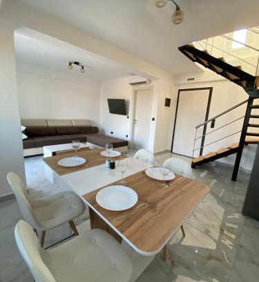 Featuring garden views, LUZ DEL SOL Villas in Nea Moudania offers accommodations, a garden, and barbecue facilities. This vacation home provides air-conditioned accommodations with a patio. The vacation home also features free Wifi, free private parking, and facilities for disabled guests. Each unit features a terrace, a fully equipped kitchen with a microwave, a dining area, and a flat-screen TV, while the private bathroom includes a bidet and a hair dryer. A fridge, a stovetop, and kitchenware are also available, as well as a coffee machine. At the vacation home, every unit comes with bed linen and towels. A car rental service is available at the vacation home. Portarias Beach is a 10-minute walk from LUZ DEL SOL Villas, while Dyonisou Beach is 0.6 miles from the property. The nearest airport is Thessaloniki, 29 miles from the accommodation, and the property offers a paid airport shuttle service.