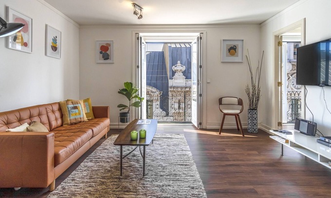 The LV Premier Chiado apartment is located in a building with an elevator and features a large balcony with city views. This is an exceptional 3-bedroom apartment, with a beautiful balcony overlooking the lively pedestrian Carmo street and Santa Justa Elevator. Air conditioning, heating, all amenities, premium hygiene products and much more. Close to attractions in Lisbon, Bairro Alto, restaurants, bars and shops. Several LVpremier apartments in the building.The LV Premier Chiado apartment CH1 is one of our most popular properties. Located in a building with an elevator, with 9 premium LV Premier apartments, it is often selected by large families and groups. The LV Premier CH1 is an exceptional apartment with 3 bedrooms and 2 bathrooms, with a magnificent balcony overlooking the lively pedestrian street of Rua do Carmo, the Santa Justa Elevator. The apartment also has an impressive view of the Carmo Convent Museum. Located in the heart of Chiado, the top shopping area with a wide variety of luxury restaurants, pastry shops, cafés, stores and much more - you couldn't ask for a more central location. The apartment has been completely renovated, with air conditioning and double-glazed windows. Occupancy of 7 people in the rooms and a maximum of 2 extra guests on folding beds or sofa bed.Please note: Check-in between 10 PM and 8 AM - 45 euros additional. Stays longer than 9 nights include weekly cleaning. Apartment located on a pedestrian street, and the closest point a car can reach is 50 meters from the entrance. There is paid public parking / garages 5 minutes walking distance. WiFi 500Mb. 8941/AL