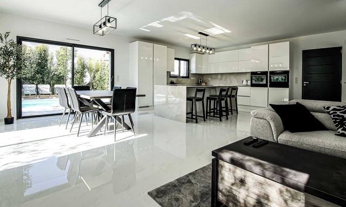 The decor is minimalist yet warm, with quality finishes and everything you need for a relaxed stay. Outdoors, enjoy a barbecue, dining area, loungers, and the calm of a residential neighborhood.