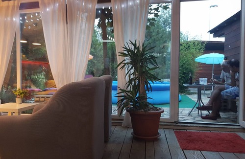 On a property backyard, you will be happy with a lot of space, small woods, and big terraces for sunbathing and swimming in our outdoor pool.