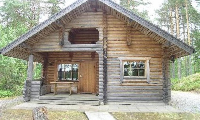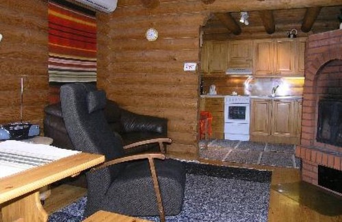 Log cabin 1992, living room/kitchen, bedroom with double bed, sleeping loft with 2 mattresses, steep stairs to loft. Washroom, dressing room, sauna, open veranda.