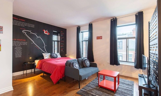 This stylish Formula1 studio apartment in Montreal is steps from top restaurants, shops, and entertainment. Perfect solo travelers or couples, it features high-end furniture and professional design for a relaxing, elegant stay.