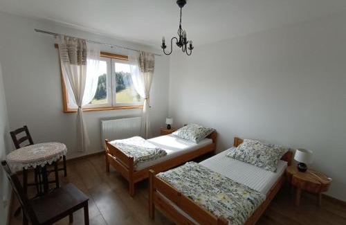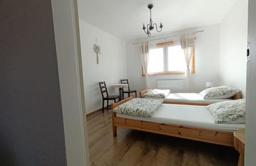 Offering a garden, Maślana Chata provides accommodations in Sokolec. Both Wifi and private parking are available at the apartment free of charge. There's parking on-site, and the property offers an electric vehicle charging station. Maślana Chata includes 2 bedrooms, 1 bathroom, a seating area, and a fully equipped kitchenette. A flat-screen TV with streaming services is featured. The accommodation is non-smoking. Guests at the accommodation will be able to enjoy activities in and around Sokolec, like hiking and walking tours. Skiing and cycling can be enjoyed nearby, while a ski equipment rental service, ski-to-door access and a ski pass sales point, are also available on-site. Świdnica Cathedral is 17 miles from Maślana Chata, while Książ Castle is 19 miles away. Copernicus Wrocław Airport is 48 miles from the property.