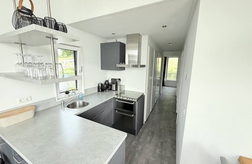 Your own villa on the water - unwinding in styleWanting to get away from the hustle and bustle? In accommodation 16, you enjoy peace, space and the special feeling of a holiday on the water. This stylish water villa is located on the marina of Ohé and Laak, with a free view over the Meuse and the green heart of Central Limburg. A place where you literally and figuratively catch your breath.The villa is modernly furnished and equipped with all conveniences. There are two comfortable bedrooms with double beds, a neat bathroom with a shower, and a separate toilet. The open kitchen has everything you need, such as a dishwasher, microwave and a complete kitchen inventory. Thanks to the air conditioning and good wifi, it is always pleasant and connected inside..Because the villa is pet-free, you are assured of a fresh and well-maintained stay. You can park your car right nearby - which is convenient upon arrival and departure.With the Meuse at your feet and nature around you, this is the perfect base for walks, bike rides or simply doing absolutely nothing on your own terrace. Whether you come with two or with the family: in accommodation 16 you will experience how special a holiday on the water can be.