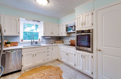 Experience 'The A' just like a Georgian and taste that Southern hospitality when you book your stay at this Mableton vacation rental! This 3-bedroom 3-bath home offers a full kitchen, lounging spaces, and a fenced backyard to recharge for your urban excursions. Kick things off with a Georgia Aquarium visit, then walk to The World of Coca-Cola. Nearby, you'll find Marietta Square — a favorite evening spot among locals. End your days like a native cheering for The Atlanta Falcons on the Smart TV!