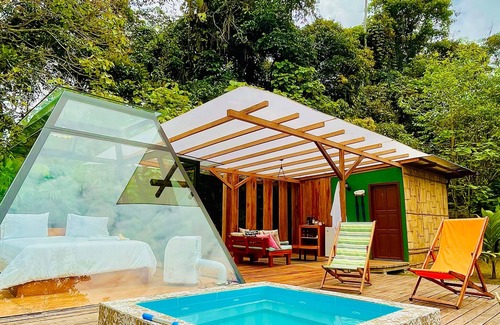 Best-rates for the Macas Glamping starts from $135 per night with includes Balcony/Terrace, Wellness Facilities, Entertainment, Parking, Designated Smoking Area, Sports/Activities, Child Friendly, Air Conditioner, View, Bedding/Linens, Guest Services, Breakfast, Internet, Bar, Laundry With all other amenities included. Treehouse Rentals offers a wide range of treehouses, forest homes, cabins, and off-grid retreats, ensuring each traveler discovers their ideal nature getaway—be it a family adventure, a peaceful retreat, or a pet-friendly retreat with the whole group.