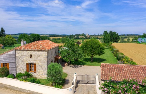 Cosy, rustic country house "Madaillan", surrounded by fields. In the hamlet Hiot 5 km from the centre of Prayssas, 16 km from the centre of Agen, 25 km from the centre of Villeneuve-sur-Lot, in the countryside. Private: property 1'500 m2 (fenced) with lawn, swimming pool (9 x 4 m, depth 80 - 175 cm, seasonal availability: 17.May. - 04.Oct.) with internal staircase and alarm system. Outdoor shower, pool house with fridge and cooking stove, boules, terrace. In the house: table tennis. Roofed, parking at the house on the premises. Shop 5 km, supermarket 7 km, bus stop "Camelat" 10 km. Golf course (9 hole) 20 km, riding stable 5 km, fishing possibilities 500 m.