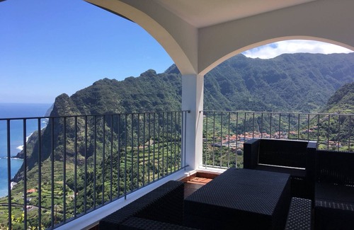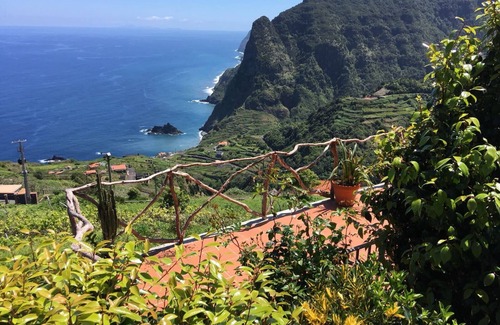 This spacious family house offers a peaceful and secluded retreat without being remote and inaccessible. On the edge of a quaint village, this villa sits on the "Levada de Cima" and overlooks surf-crashing seascapes and rocky mountain vistas.