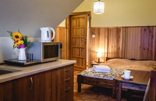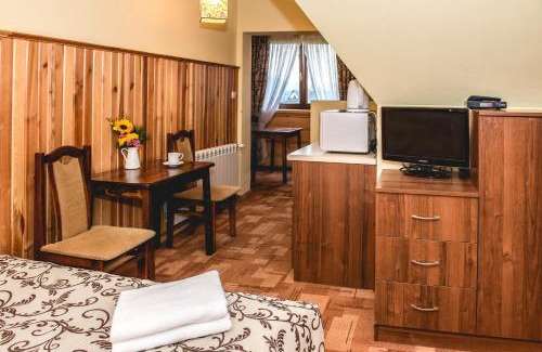 Madejowy Dwór offers accommodations in Jurgów, 5.2 miles from Bania Thermal Baths and 13 miles from Treetop Walk. The accommodation offers ski storage space, as well as a garden and barbecue facilities. There's a sun terrace and guests can access free Wifi and free private parking. At the homestay, units are equipped with a wardrobe, a flat-screen TV, a private bathroom, bed linen, and towels. Rooms are equipped with a kettle, while selected rooms also offer a fully equipped kitchen with a microwave, a stovetop, and kitchenware. At the homestay, some units are allergy-free. For guests with children, the homestay provides outdoor play equipment. A water park is available on-site, and both skiing and cycling can be enjoyed close to Madejowy Dwór. Zakopane Railway Station is 14 miles from the accommodation, while Zakopane Aqua Park is 14 miles from the property.