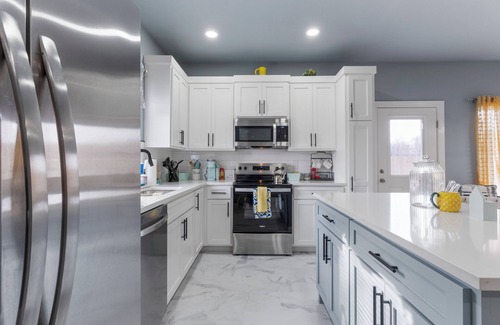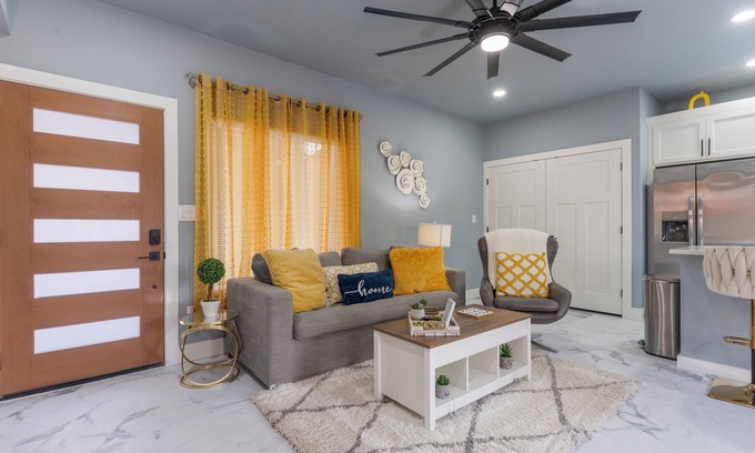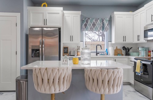 This distinctive space seamlessly combines vibrancy, elegance, and modern sophistication. Its open-concept design brings together the kitchen, dining, and living areas, creating an ideal setting for intimate gatherings. Thoughtfully selected sleeping arrangements offer comfort without sacrificing style. Just 5 minutes from downtown Tulsa, you'll enjoy convenient access to top attractions while enjoying a peaceful retreat. Perfect for both short stays and longer visits, this space provides everything you need for an unforgettable experience.