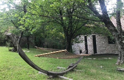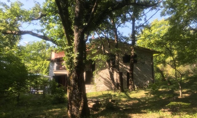 The House is a luxury stone villa built upon an ancient stable, set in a forest, in the heart of the Monti Lucretili Regional Park, where you can only hear wind through the oak and elm trees, water flowing in the nearby creek, and you can only meet hares and boars and the odd roe deer; but you are just 15 minutes drive from the cozy medieval towns of Scandriglia and Orvinio and 1 hour 15 from Rome.