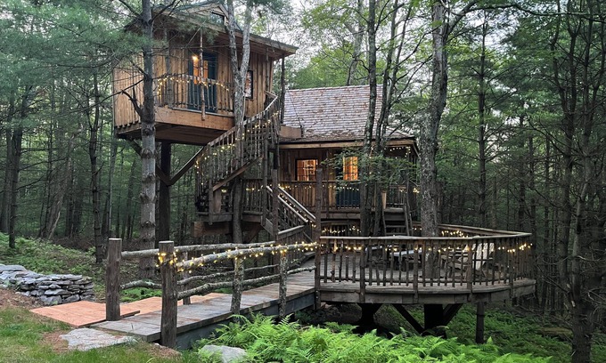 Magical, all season, multilevel treehouse on beautiful 120 acre property. | Cottage in Sparrow Bush