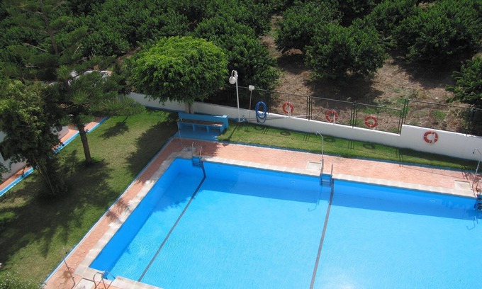 Cozy apartment with 2 bedrooms, capacity for 5 people maximum, in Residential Las Palmeras, rented for weeks, tickets on Saturdays. Enjoy your holidays, with great views of the Vega and the sea, the rest and the coolness of the trees from the terrace, have 2 pools and tennis court. Both bedrooms have fitted wardrobes (double bed and the other 2 beds), 2 full bathrooms with courtesy and a spacious living room with a sofa bed, TV, DVD, wifii, more than 500 international channels in HD Digital Satellite TV . Exit to the terrace, also equipped. Kitchen with fridge-freezer, microwave, oven, all kitchen utensils, blender, coffee maker, iron and board. The apartment is equipped with sheets and towels, in abundance and is delivered totally clean, until the last detail.