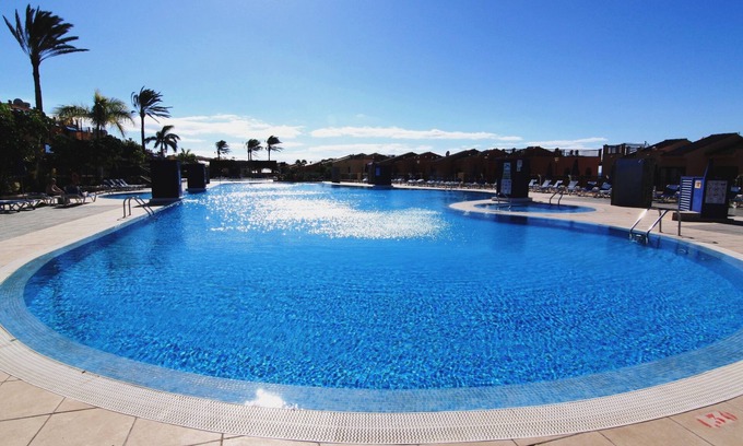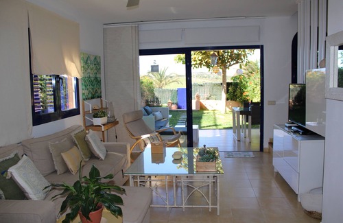 Modern, cute, two bedroom Bungalow in the best of Meloneras Area. Close to Beach, Golf and Sea Avenue. Near to Supermarkets, restaurants, bars, shops and all kind of ammenities. A relaxing area with all the luxury Hotels around in the best area of Meloneras, the best of the south of Gran Canaria. Enjoy the private garden, with own solarium area, BBQ, and great communal Pool area with children pool and warm jacuzzi. Perfect place to enjoy an unforgatable holidays. AIR CONDITIONER, WIFI & SATELLITE TV.