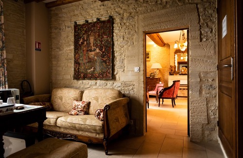 The establishment comprises two flats and a charming studio with exposed stonework and wooden beams, creating a cosy atmosphere.