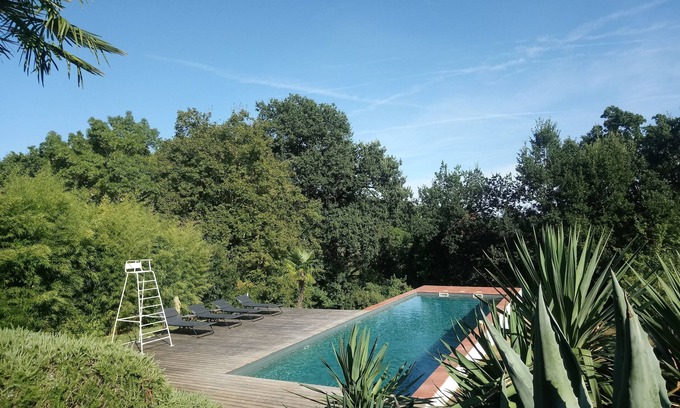 If you want to live a magical moment in one of the Most Beautiful regions of France, this place is for you. A real mix entre country-style tranquility and beauty of design. You can chill by the pool Nearly scrutinizing the horizon, let time goes Slowly in a splendid library or simply indulge in your favorite recipes in a huge kitchen. Easy access and close to shops, enjoy your vacation in an enchanted setting and wonderful ...