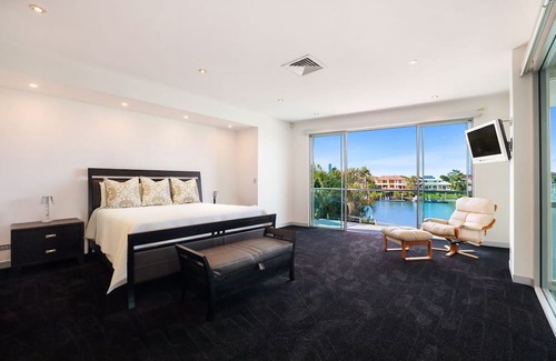 Prepare to be dazzled by the scale, style and quality of this magnificent multi-level mansion overlooking Main River on the prestigious Isle of Sorrento. Occupying a private 1,086m2 parcel at the end of a cul de sac, a secure gatehouse reveals a vast tiled forecourt that sets the stage for a timeless architectural design. A grand sense of scale is established on entry where 4.8m ceilings and extensive glazing shed natural light across living, dining and entertaining of generous proportions. A slender indoor pool finished in azure blue glass mosaic tiles is the central focal point of ground floor living, with a classy cocktail bar, formal dining and relaxed sitting on one side, and an entertainer's kitchen plus butlers pantry and casual dining on the other. A marble staircase leads to four generous bedrooms, including a grand master suite and a second bedroom with river to city skyline views. Guests can get comfortable in a supersized ground floor suite with private access, walk-in robe and ensuite. An observatory terrace captures spectacular view lines across the water to the city skyline where iconic buildings such as Q1 in Surfers Paradise turn to sparkling lights by night. Resort-style leisure plays out across a riverfront terrace with thatch Bali pavilions, tropical gardens, swimming pool with underwater stools, and a sauna inside. A pontoon caters for luxury cruisers while prestige vehicles are safely stored inside two garages.