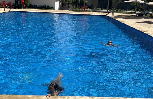 Yes, this Plage des Nations apartment has a swimming pool. Check the Facility Overview section for details about the pool and other available facilities.