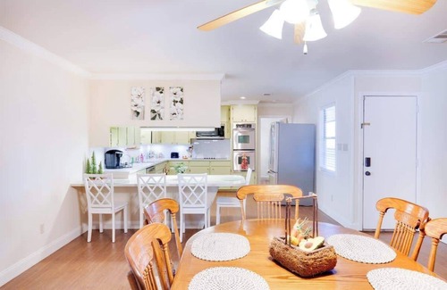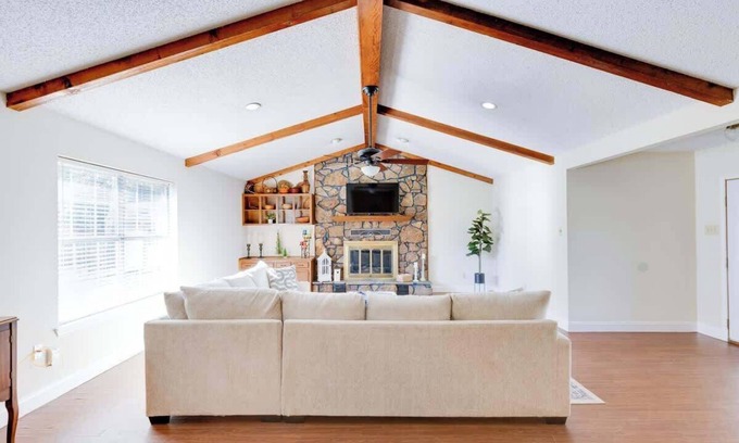The fully equipped kitchen is ready for preparing family meals, and the dining area offers plenty of seating for everyone to enjoy. With its cozy atmosphere, charming details, and spacious design, this home is the perfect place to create lasting memories during your stay in Longview. Whether you're spending quality time together indoors or relaxing on the back patio, our home offers a delightful retreat that you'll want to return to again and again.