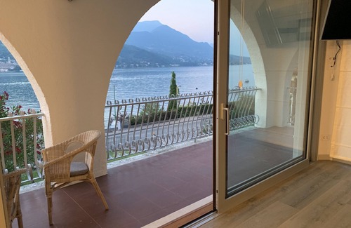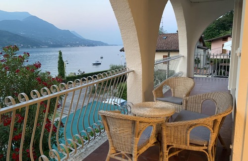 Beautiful view of Lake Garda, a stone's throw from the center of Salò. Comfortable apartment complete with all services. Well furnished three-room apartment with spacious living room and terraces with lake view, n. 2 bedrooms with lake view and spacious / comfortable beds, large bathroom with shower and washing machine, well equipped kitchen with dishwasher, traditional oven, microwave oven, fridge, and various appliances. Access to the private beach a few meters from the house. Total relaxation on Lake Garda.