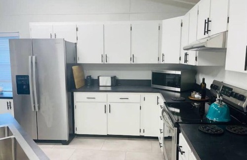 Full updated Kitchen with all the ammenities of home (pots, pans, blender, stainless steel appliances including dishwasher & more) with a lovely coffee bar. TV Rm, family activity Rm, and screen Rm