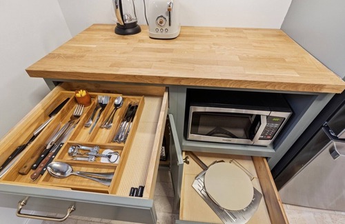 Welcome to our cute, cozy, and separate guesthouse! Step inside and feel the warmth under your feet with heated tile flooring, with no neighbors above, below, or beside you. We’ve got you covered with essentials, plus thoughtful extras like pour-over coffee, French press, pizza stone, eco-friendly soaps, and a steamer for your clothing. Our space includes features designed with the environment in mind. And we happily welcome your furry friends to our guesthouse! Our yard is their yard! Working from home? We've got you covered with an optional foldable desk that's ready when you are and tucks away easily when you're not.