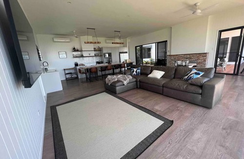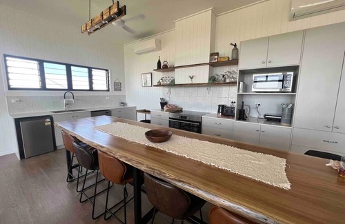 Kick back and relax in this calm, stylish space. MainRidge on the Atherton Tablelands is 5 mins from the picturesque town of Yungaburra, QLD. This house was architecturally designed around the spectacular views of Lake Tinaroo and the rural landscape. With a modern country vibe you can choose to stay in and socialise with friends and family, or hit the water. Nightly price rates are based on 5 bedroom mainhouse (max 12pl)Two extra bedrooms are available in bunkhouse with 8 beds at an extra cost.