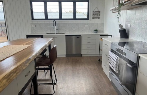 You may book the main house with 5 bedrooms (sleeps up to 12), 2 with ensuites and 1 main bathroom. Bedroom 4 can also change from a king bed to 2 king singles. You may add on one or two of the bunk rooms which sleep an extra 4 people in each ( great for the kids), at an extra cost of $100 each per night. When booking the bunk rooms you will also get the extra bathroom and toilet in the bunk house. Please let me know what you require.
