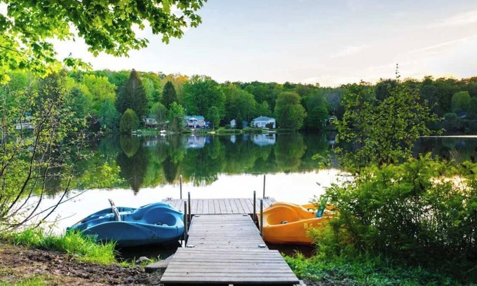 Upon your arrival, you'll be greeted by the serene view of the lake and the tranquil atmosphere. The chalet features a floating dock, perfect for enjoying water activities such as canoeing, kayaking, or simply relaxing by the water's edge.