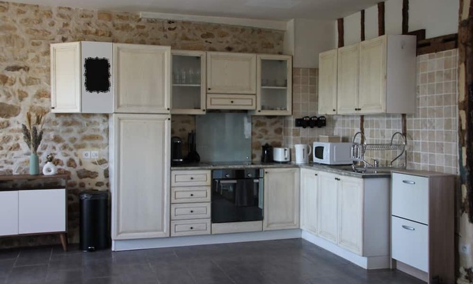 Maison de Charme au Coeur D'un Haras Avec Accès à un Petit Étang is located in Roullee. Maison de Charme au Coeur D'un Haras Avec Accès à un Petit Étang provides accommodation, featuring Spa, Bar, Kitchen, among other amenities. This House features Spa, Bar, Kitchen, to make your stay a comfortable one.