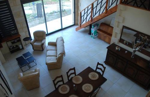 Featuring a garden, Maison de charme aux grands volumes features accommodations in Minzac. The property is around 19 miles from Célestine Grotto, 21 miles from Lande Golf Course, and 23 miles from Chateau des Vigiers Golf Course. The chalet also provides free Wifi and free private parking. Providing a terrace and garden views, the spacious chalet includes 3 bedrooms, a living room, cable flat-screen TV, an equipped kitchen, and 1 bathroom with a shower. Towels and bed linen are provided in the chalet. For added privacy, the accommodation has a private entrance and soundproofing. Bergerac Dordogne Périgord Airport is 32 miles away.