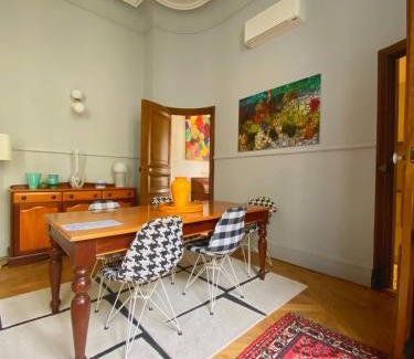 BathroomConditioner, Body soap, Guest bathroom, Toothbrush, Shampoo, Toilet, Toilet paper, Hairdryer, Free toiletries, Private bathroom, Shower, Towels, Bathtub or showerMedia & TechnologyStreaming service (like Netflix), TV, Radio, Satellite channels, Pay-per-view channels, Flat-screen TV, Cable channelsGeneralIroning facilities, Tile/Marble floor, Heating, Fire extinguisher, Air conditioning, Iron, Carpeted, Smoke Alarm, Private entrance, Trash cans, Hardwood or parquet floorsOutdoorsPatio, Terrace, Outdoor dining area, Outdoor furniture, BalconyKitchenDryer, Dishwasher, Electric kettle, Cleaning products, Coffee machine, Microwave, Kitchenware, Stovetop, Toaster, Kitchen, Wine glasses, Refrigerator, Washing machine, Dining table, OvenLiving AreaDesk, Sitting area, Dining area, SofaBedroomLinens, Wardrobe or closet, Extra long beds (> 6.5 ft)AccessibilityUpper floors accessible by stairs onlyBuilding CharacteristicsPrivate apartment in buildingRoom AmenitiesNon-feather pillow, Hypoallergenic pillow, Socket near the bed, Drying rack for clothing, Feather pillow, AdapterFood & DrinkBottle of water, Wine/ChampagneViewQuiet street view, Inner courtyard viewPhysical distancingSingle-room AC for guest accommodationCleanliness & disinfectionHand sanitizer |